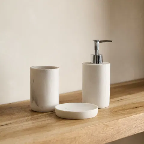 Set De Baño 3 Piezas Linea Efecto Marmol Blanco
